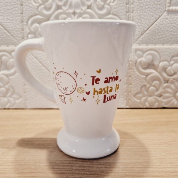 Tazon conico chocolatero con pie frases en rojo y dorado