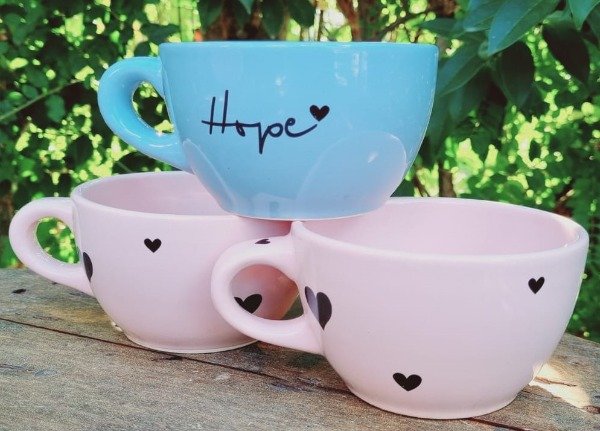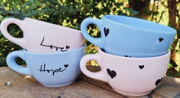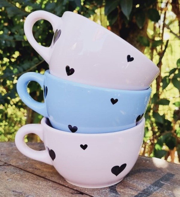 Tazon de campo pastel x unidad con corazones negros surtidos varios tamaños